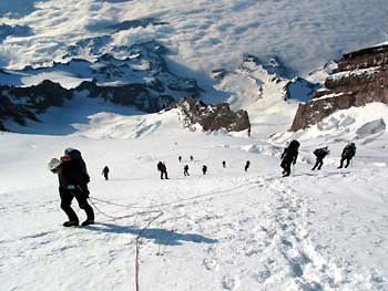 One on my many legacies from growing up in Alaska is mountain climbing. I dreamt of standing astride Alaska's tallest peak, Denali (20,320ft; 6,194m) growing up. On June 12, 2003 our team summited Denali and in the clear air we could see forever. Mountain climbing has created a good reason to see some far corners of the earth with some wonderful friends. Bob Waldrop, Larry Bushnell and I summitted two top peaks in Mexico - Orizaba (18,405ft; 5,610m) and Ixtacchlhuatl (17,342ft; 5,286m). We learned to eat cactus and how to keep free range cattle out of our tents.